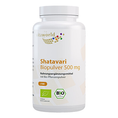 * Referenzmenge für die tägliche Zufuhr gemäÃY EU-Verordnung 1169/2011. ** Keine Angaben vorhanden. Zutaten: 80,6% Bio Shatavari Pulver, Ãoeberzugsmittel: Hydroxypropylmethylcellulose (pflanzliche Kapselhülle). Allergene: keine Nettofüllmenge: 180 Kapseln = 111,6 g Aufbewahrungsbedingungen: Die Dose nach Gebrauch gut verschlossen halten. Kühl, nicht über 25 Grad und trocken lagern. Ursprungsland des Lebensmittels: Deutschland Anschrift des Herstellers: Vita-World GmbH Röderweg 26 65232 Taunusstein Weitere Hinweise: Glutenfrei, lactosefrei, ohne künstliche Aromen, ohne Gentechnik, für Vegetarier und Veganer geeignet. Die angegebene empfohlene tägliche Verzehrsmenge darf nicht überschritten werden. Nahrungsergänzungsmittel sind kein Ersatz für eine ausgewogene und abwechslungsreiche Ernährung und gesunde Lebensweise. Für kleine Kinder unzugänglich aufbewahren. Quelle: Angaben des Herstellers 80,6% Bio Shatavari Pulver, Ãoeberzugsmittel: Hydroxypropylmethylcellulose (pflanzliche Kapselhülle). Allergene: keine |